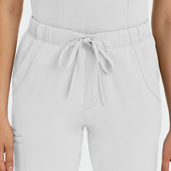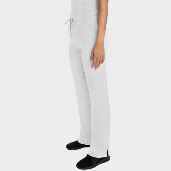 The elegant HH REBECCA women's scrub pants by Healing Hands feature a comfortable, modern design with a straight-leg silhouette and an elastic waistband with adjustable drawstrings for a secure fit.