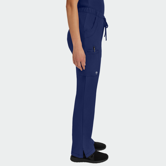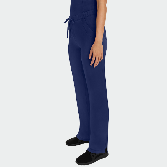 The elegant HH REBECCA women's scrub pants by Healing Hands feature a comfortable, modern design with a straight-leg silhouette and an elastic waistband with adjustable drawstrings for a secure fit.