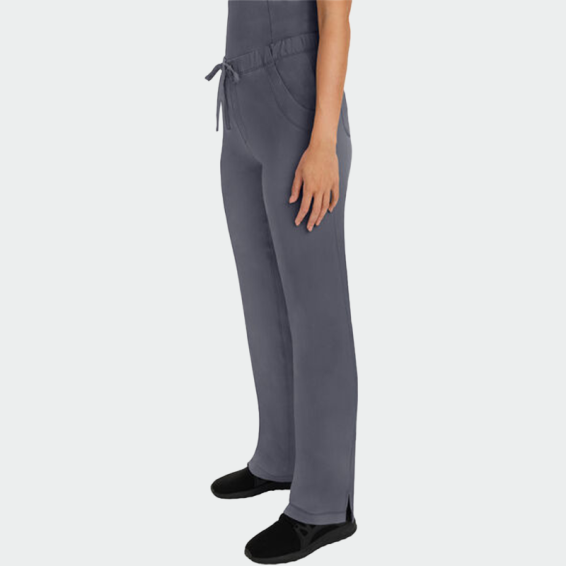 The elegant HH REBECCA women's scrub pants by Healing Hands feature a comfortable, modern design with a straight-leg silhouette and an elastic waistband with adjustable drawstrings for a secure fit.