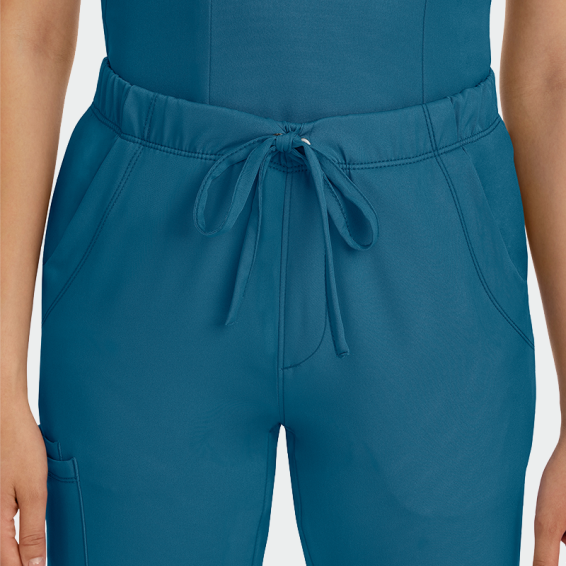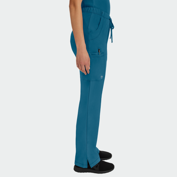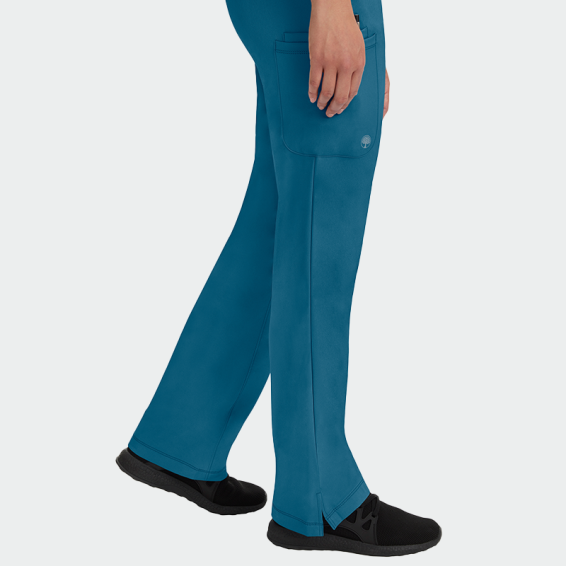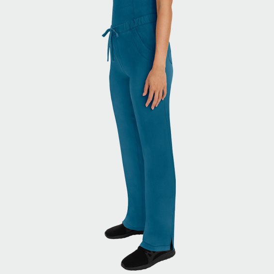 The elegant HH REBECCA women's scrub pants by Healing Hands feature a comfortable, modern design with a straight-leg silhouette and an elastic waistband with adjustable drawstrings for a secure fit.