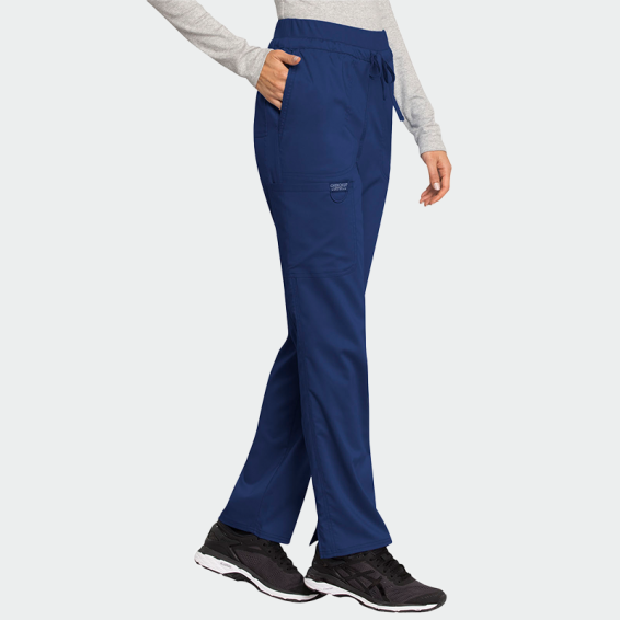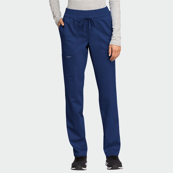 The elegant women's medical pants REVOLUTION WWE105 by CHEROKEE feature a comfortable, modern cut and a straight leg silhouette.