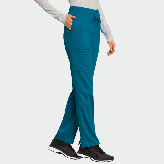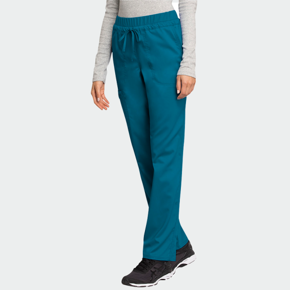 The elegant women's medical pants REVOLUTION WWE105 by CHEROKEE feature a comfortable, modern cut and a straight leg silhouette.