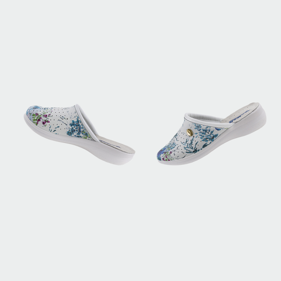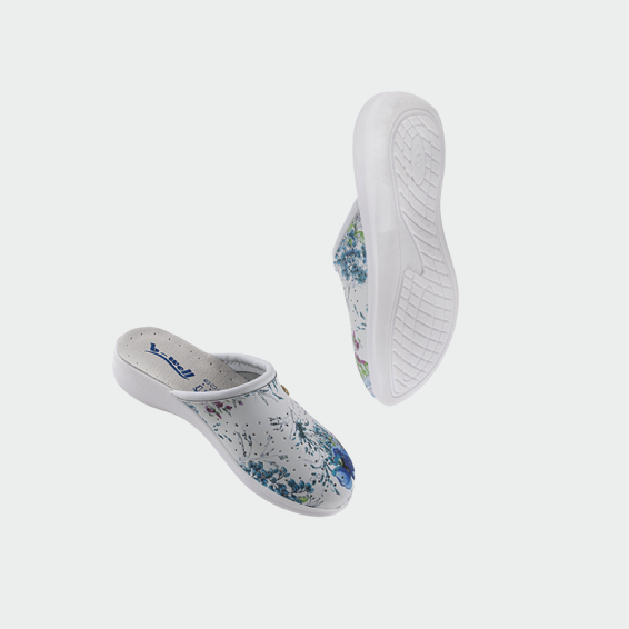 B-well AERIAL Lady medical slippers are made of genuine leather in the front part. The sole is anti-slip from polyurethane, and the insole with an energy absorber in the heel area. Our medical slippers have a modern design in white color, and are light and comfortable throughout the work process.