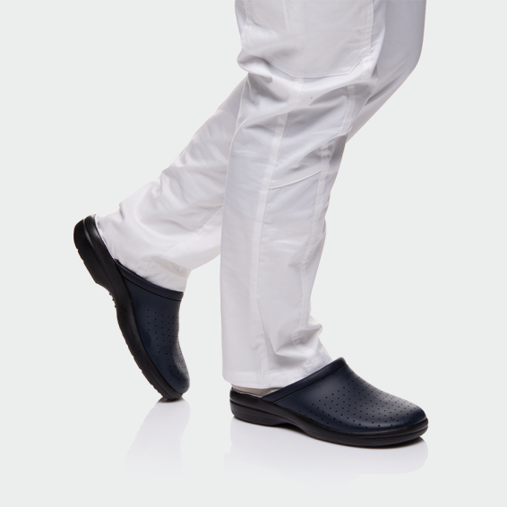 B-well AERIAL Man slippers are made of genuine leather in the front part. The sole is anti-slip from polyurethane, and the insole with an energy absorber in the heel area. Our medical slippers have a modern design in white color, and are light and comfortable throughout the work process.