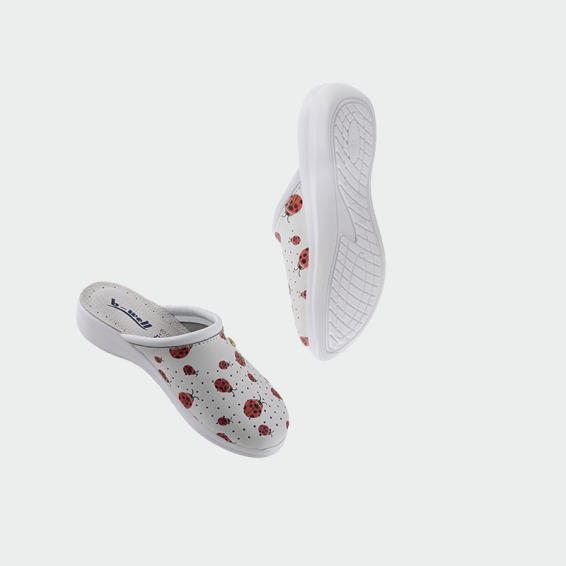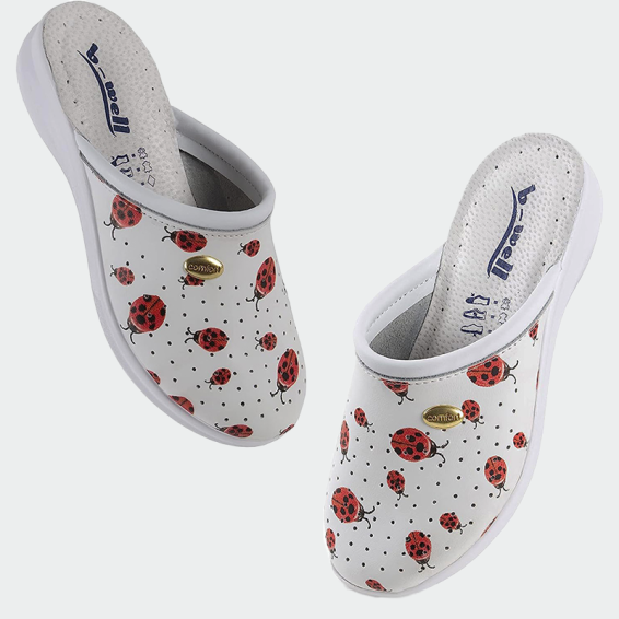 B-well AERIAL Lady medical slippers are made of genuine leather in the front part. The sole is anti-slip from polyurethane, and the insole with an energy absorber in the heel area. Our medical slippers have a modern design in white color, and are light and comfortable throughout the work process.