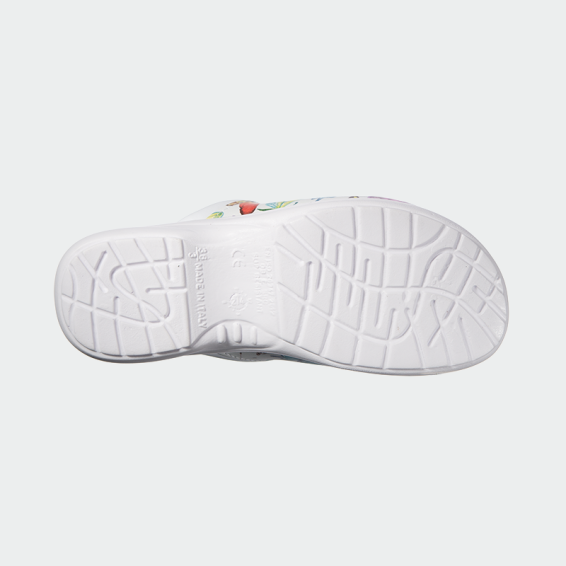 B-well AERIAL Lady medical slippers are made of genuine leather in the front part. The sole is anti-slip from polyurethane, and the insole with an energy absorber in the heel area. Our medical slippers have a modern design in white color, and are light and comfortable throughout the work process.