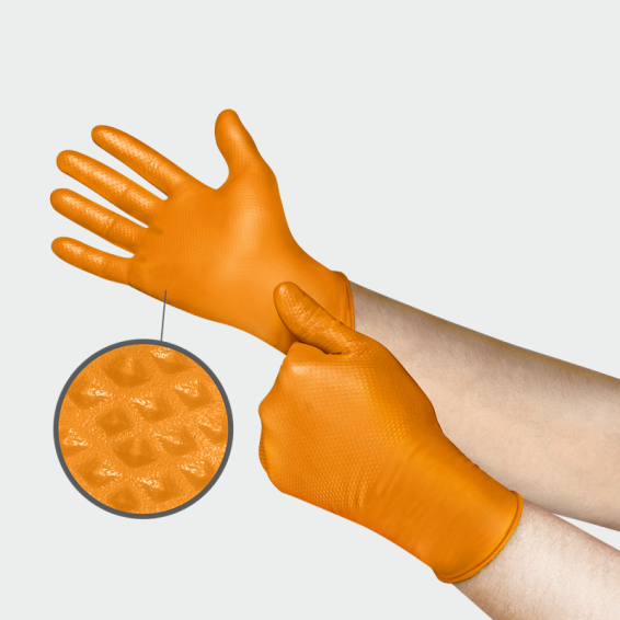 disposable nitrile gloves that provide a secure grip thanks to the Mega