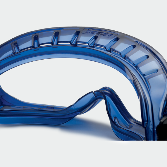 BLAST safety glasses are a clear model with a PVC ventilated frame, and