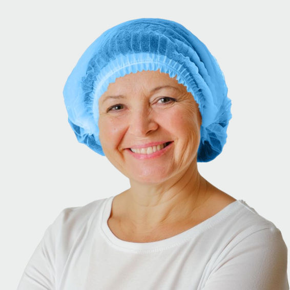 FEATHER disposable cap is a bouffant cap made of non-woven fabric, used in medical facilities, restaurants, hotels, hairdressing, and beauty salons or anywhere where it is required to prevent hair from contaminating the work environment.